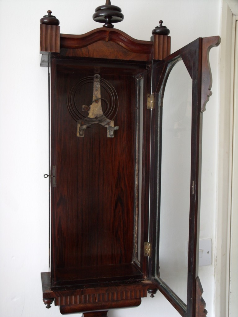 lusyk 7 #319 Napisano 10 Maja 2013 Fibo myślę, że z Twoim zegarem wszystko jest tak, jak być powinno. Stare plecy coś zjadło wraz ze starym dystansem. Jakby tarcza dochodziła do szyby, nikt by sobie tym milimetrowym dystansem nie zawracał głowy. W tym zegarze trzeba było wszystko dostosować do tarczy a precyzyjniej do wskazówek. Ja bym zrobił plecy zegara tej grubości, co frez, dorobił dystans na wzór wieszaka i cieszył się pięknym tego cacka, gratuluję.Poniżej przykład zastosowanego oryginalnie dystansu przez Lenzkircha i nie na potrzeby tarczy, czy wskazówek a dla wahadła. 0 Udostępnij tę odpowiedź Odnośnik do odpowiedzi Udostępnij na innych stronach