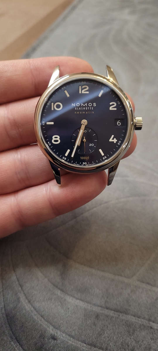 Nowy club generalnie na plus - jaśniejsza tarcza, dłuższe wskazówki, lepsze proporcje na tarczy poza trochę za małym napisem "NOMOS".