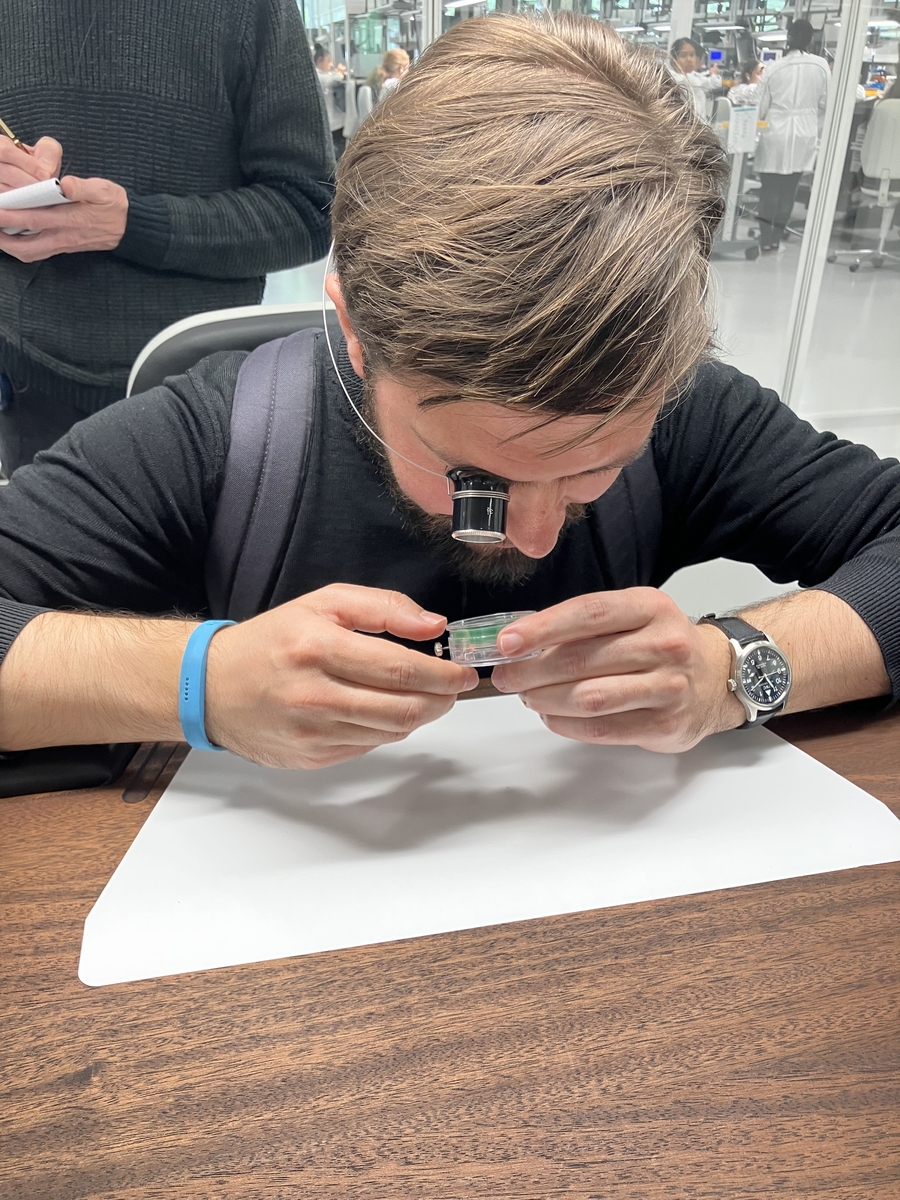 3) następnie zostaliśmy zawiezieni do nowej fabryki (powstała w 2018). Tutaj często przypomina się o tym by nie robić zdjęć. Widać, jak produkowane są najmniejsze elementy mechanizmu, przez ich zdobienie, szlifowanie kopert, malowanie tarcz i indeksów. Są miejsca, w których można samemu usiąść przy stole technicznym i poudawać, że się wie co się robi.