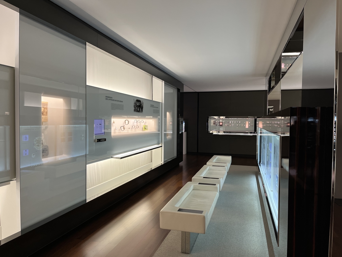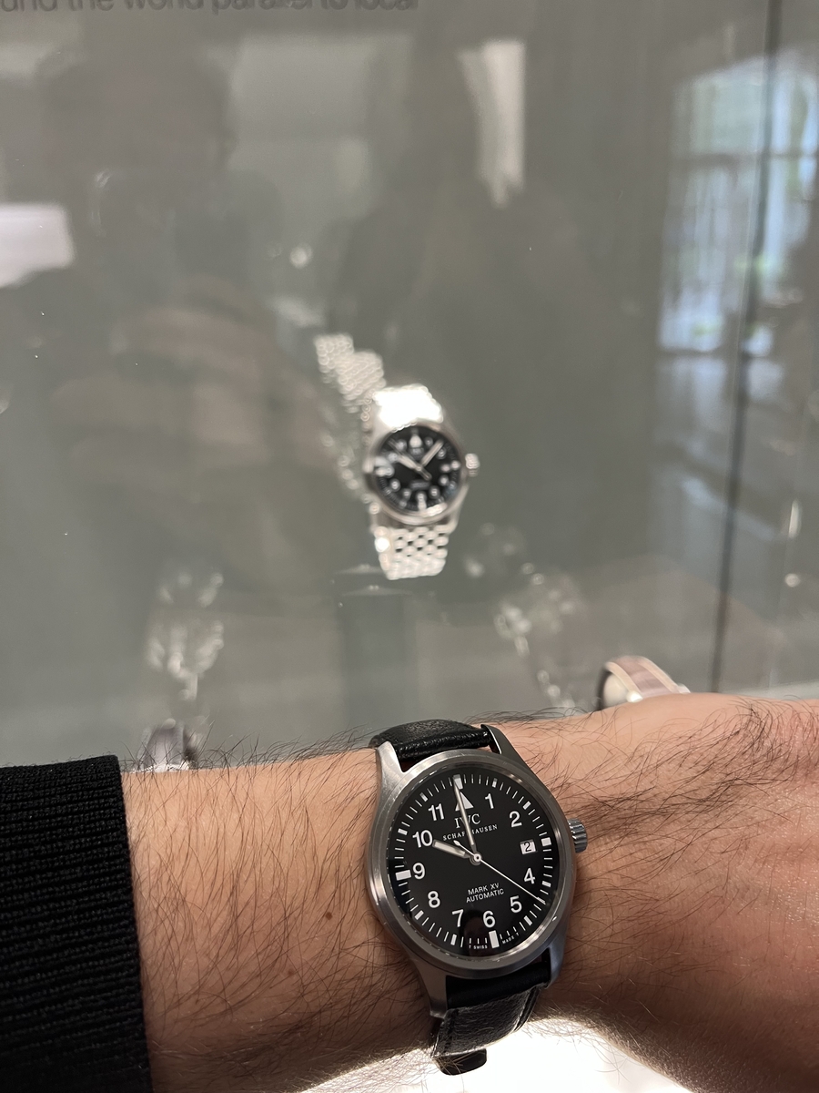 2) kolejnym etapem był spacer po muzeum. Znajdują się w nim zarówno klasyczne (pierwszy Big Pilot) jak i mniej popularne zegarki (np. Mark zrobiony dla SAABa, Porsche Design na rynek arabski, itp.). Przewodniczka zna się na tych modelach na wyrywki i o każdym powie coś ciekawego. Mój nowo nabyty Mark XV czuł się tu jak w domu (pozdrawiam @wojtek91 ).