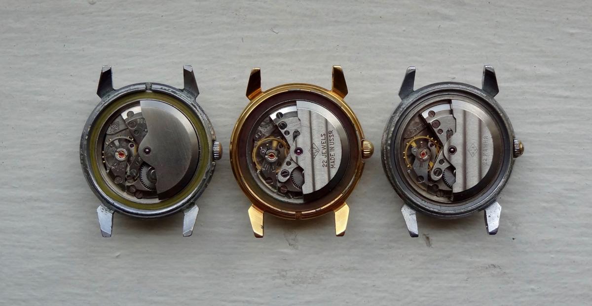 Poniżej przykłady różnych automatów. Po lewej Rodina, w środku Poljot eksportowy, po prawej przeciętna Rodina.