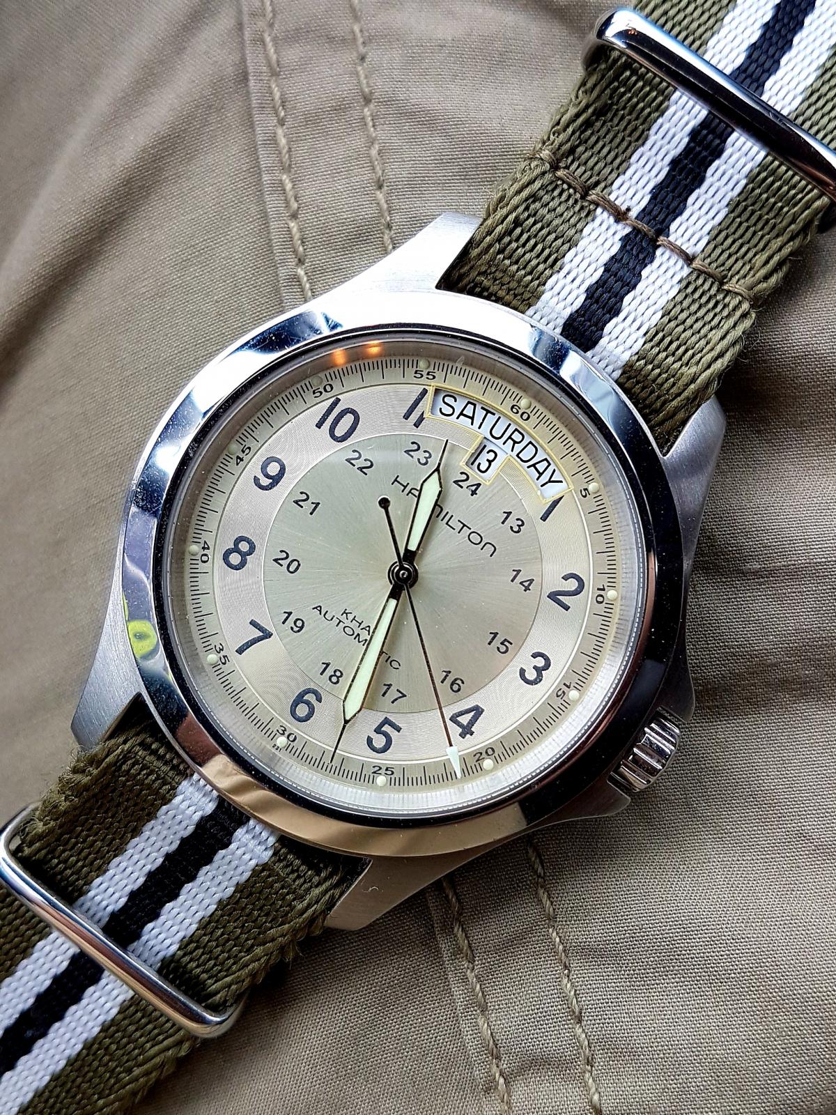 - HAMILTON Khaki Field King Automatic - fajny, wolę bardziej minimalistyczną tarczę.