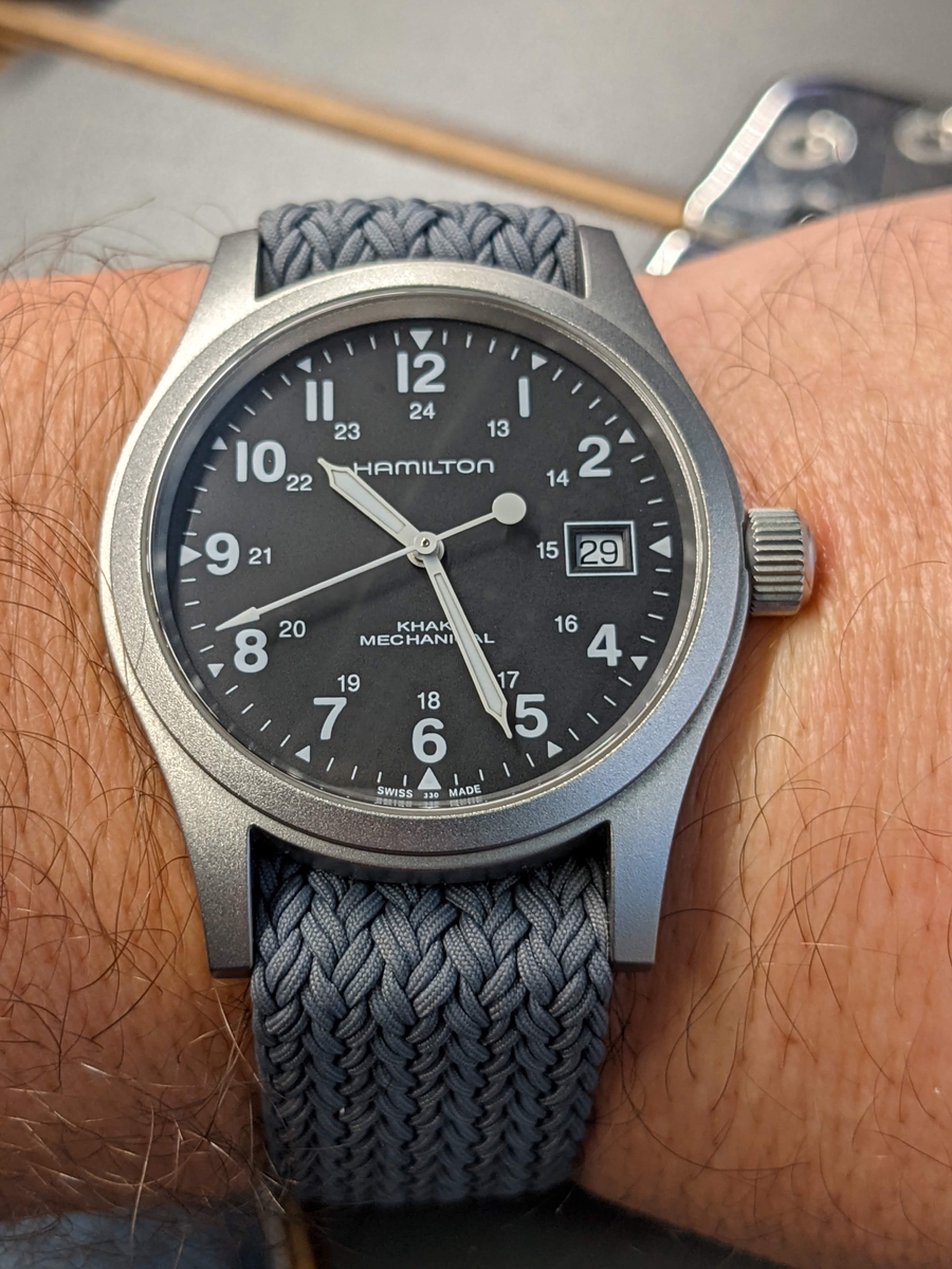 Świetny pasek od Blackpawstrap, bardzo dobrej jakości i idealnie pasuje do zegarka. Zapięcie Hamilton.