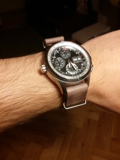 No to nowy nabytek w kolorze :) Specjalnie dla Tomka na zachętę ubrany w sportowy pasek Pattini. Przymierzałem pięć innych pasków, w tym skórzany zulu i czarne parciane nato i właściwie każdy mu pasuje :)