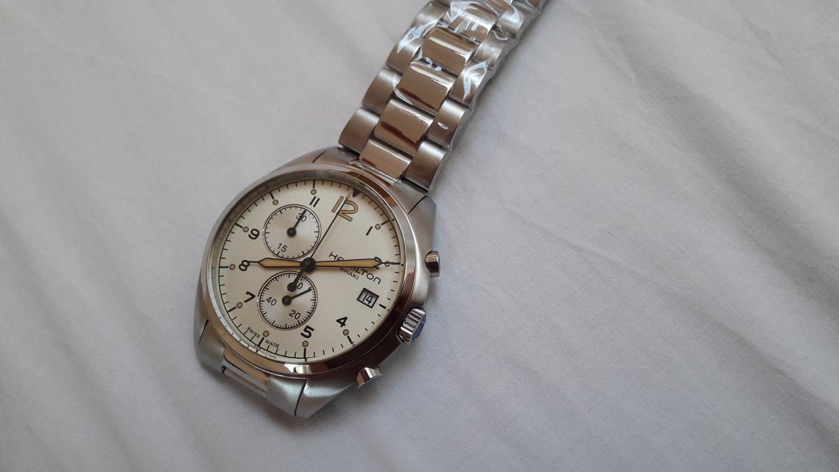 A tak się zakończyła moja przygoda z moim pierwszym i ostatnim Hamiltonem. Zegarek bardzo ładny, nietypowy , świetna bransoleta. WR100 ale okazało się, że WR100 to za mało pod zwykły prysznic...nie zaparował...woda po prostu się wlała do środka. Ponadto sekundnik stopera się nie centrował, co ponoć jest cechą tego mechanizmu. Zresztą okazało się, że jest tam mechanizm jak określił zegarmistrz "jednorazowy szajs plastyk". Bardzo ładne zapięcie bransolety, ale niestety raz się zamykało dobrze  a raz źle. Szybka była zamontowana tak , że patrząc pod kątem były widoczne jakieś bąble.  Podsumowując tyle wad w jednym zegarku jeszcze nie miałem. Dobrze , że autoryzowany sprzedawca Hamiltona z Zielonej Góry wymienił mi ten zegarek na Seiko Premier w podobnej cenie ale jednak zegarek 2 klasy wyżej. Taka ciekawostka...mają tam całą kolekcję Orient Star.