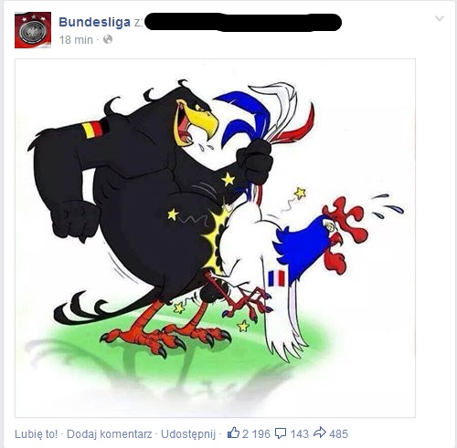 Taki oto obrazek umieścił oficjalny profil bundesligi na swoim profilu na fb po wygranej Niemiec nad Francją w ćwierćfinale MŚ. Ciekawe co na to Francuzi :)