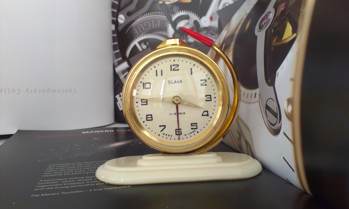 Czyli ta tarcza „służyła” w jakimś innym budziku „Slavy”... Ciekawe jakie to budziki miały identyczną wyglądem tarczę (tylko że z insygniami «Мир» zamiast „Slava”)?!
