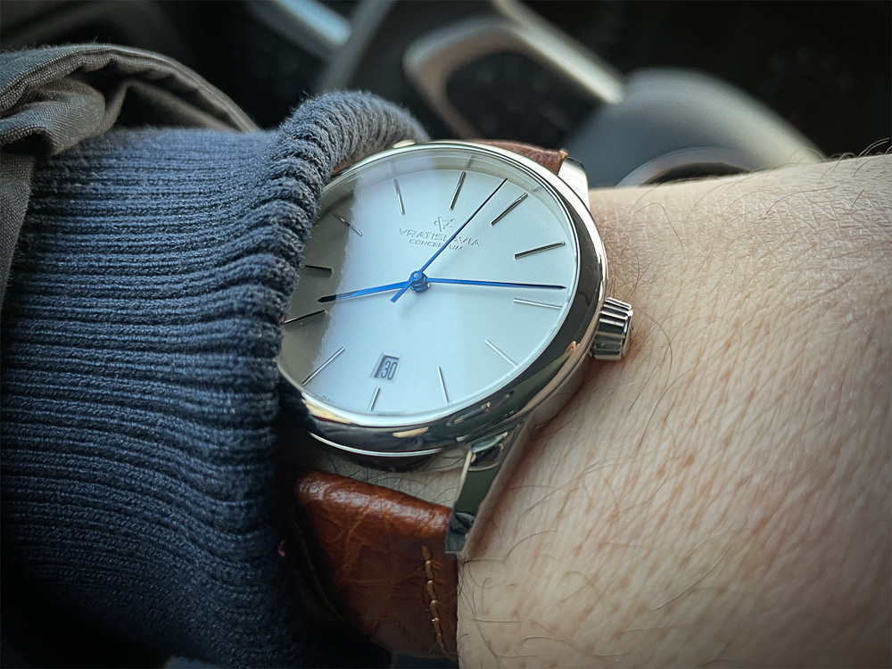 Ostatnio mocno poszukuję zegarka z jasną tarczą i wpadła mi właśnie taka Vratka.