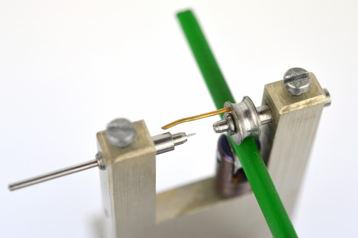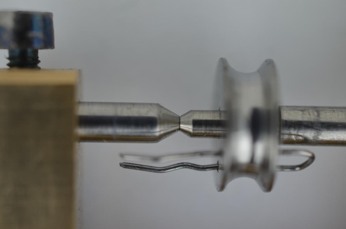 Czy otwor 1/100 mniejszy od srednicy drutu bedzie dobry? Czy drut na czop musze jakos przygotowac: termicznie lub mechanicznie? Oske przed wierceniem musze zmiekczyc czyli nagrzewac koncowke na szaro czyli powyzej 330°C. Jak gleboko musze wiercic? Na jaka krotnosc srednicy czopa? Osadzenie drutu sprezynowego polega na wciskaniu z jednoczesnym wkrecaniem? Jak sprawdzic jakosc osadzenia? Czy poprzez probe wyciagniecia? Gdy osadzilem drut, czop do potrzebnej srednicy czyli fi 0,12mm poleruje na tokarce do czopow.