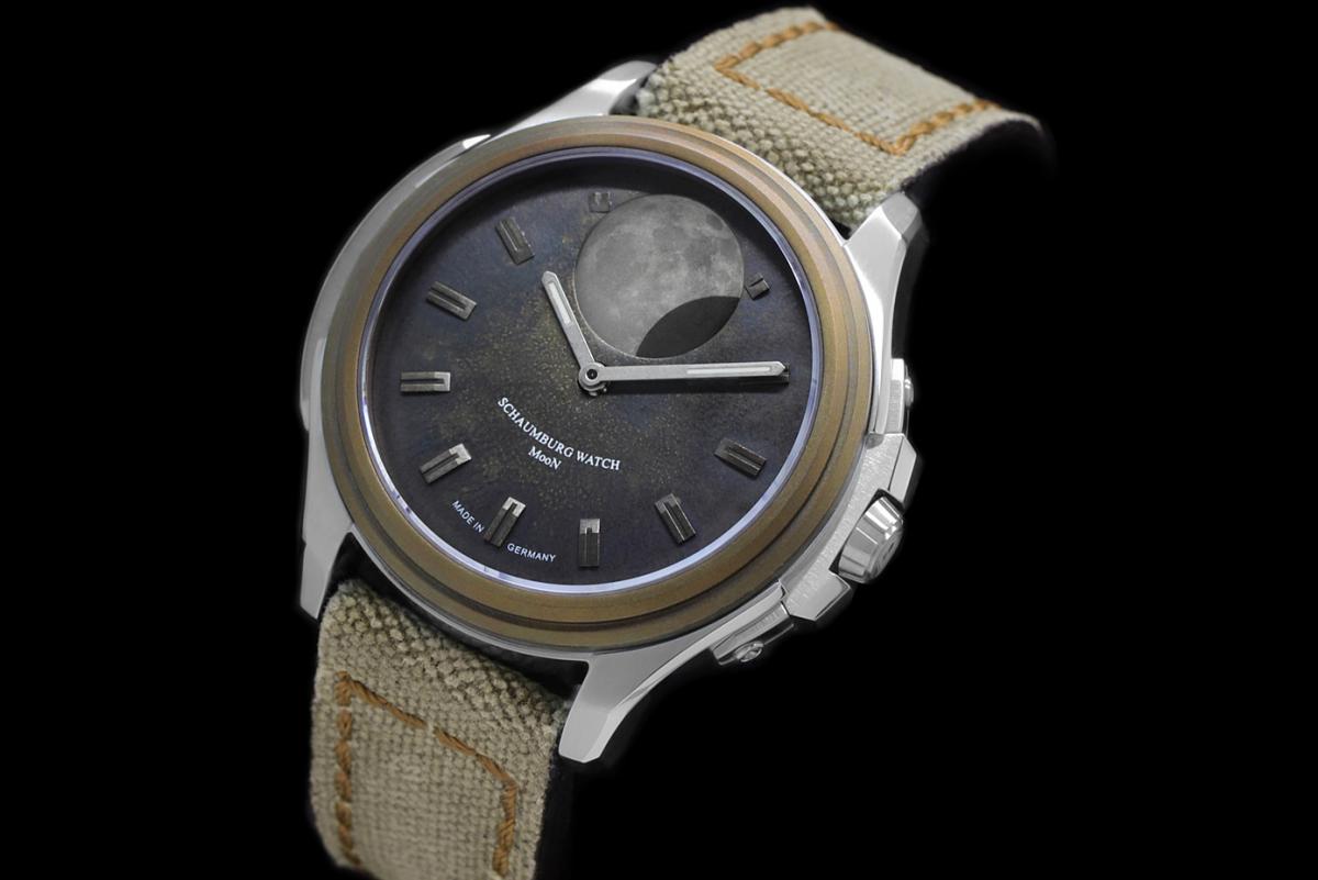 MooN 1 i Moon 2: Mechanizm SW11 (Schaumburg Watch na bazie Soprod), średnica 43 mm, grubość 14, 5 ATM, perpetual moon z niewiarygodną dokładnością wskazań faz księżyca, błąd 1 dzień na 122 lata. Cena promocyjna 9900 PLN