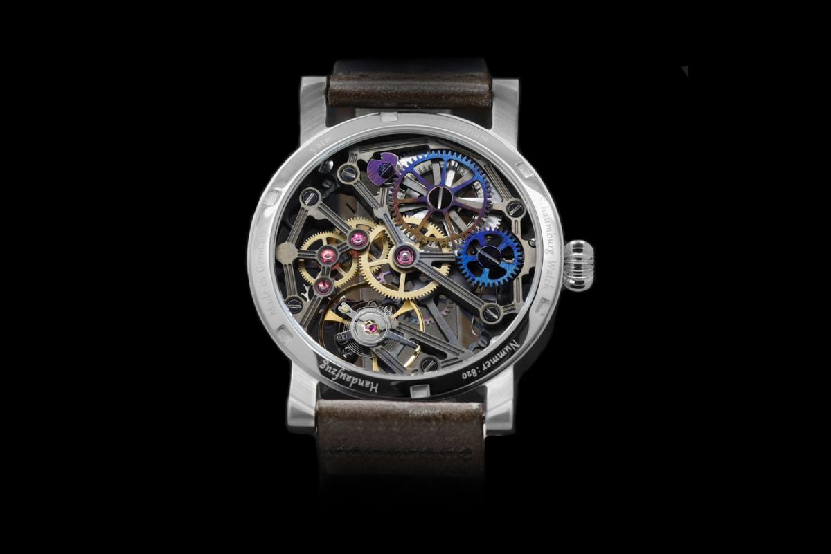 Mechanizm SW-07 (unitas) ręcznie grawerowany i szkieletowany, 5 ATM, 42 mm.