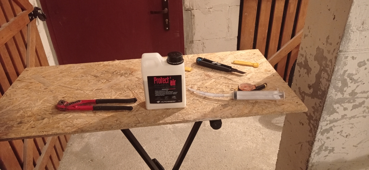 Klej cyjanoakrylowy z dodatkiem opiłków aluminium celem wzmocnienia osadzenia zaworu. Potem oszlifowane i zaklejone taśma Gorilla tape. Gdy to szlifowałem to wyglądało jakbym to zaspawał, ale gdybym dorwał się do spawarki to zapewne już bym szukał nowych obręczy. Ogólnie rzecz ujmując to tragiczna jest ta obręcz, ale co tam. Na start może być.