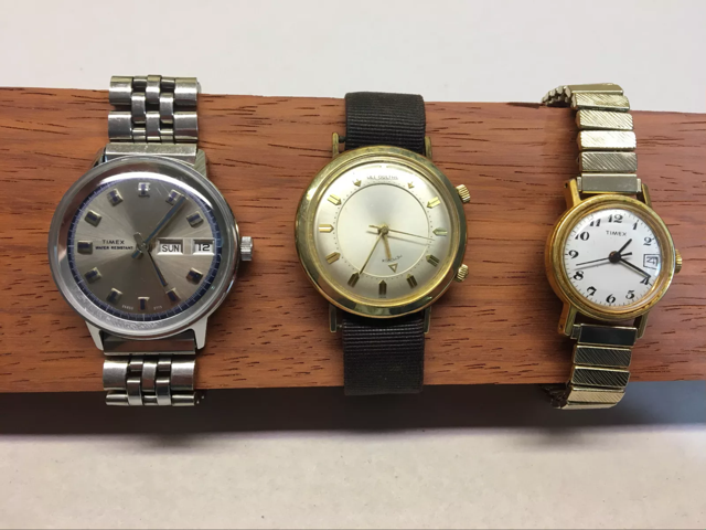3 zegarki kupione na aukcji 2 timex'y i 1 zegarek z alarmem (sprzedawca źle odczytał i zapisał nazwę) [:)] Na 15 sekund przed zakończeniem aukcji cena wynosiła 36 $ - potem podskoczyła kilka razy no ale 3 zegarki są moje