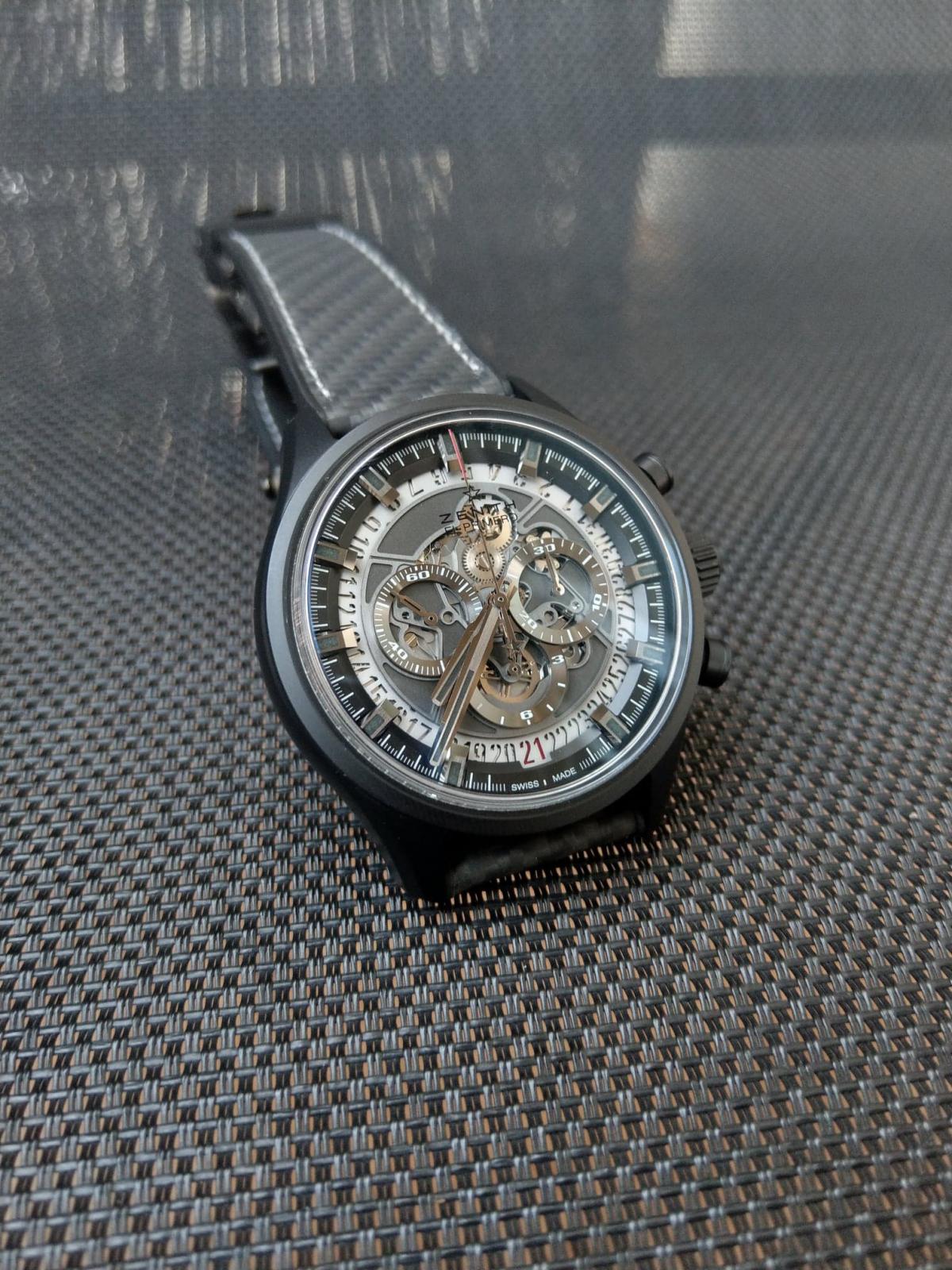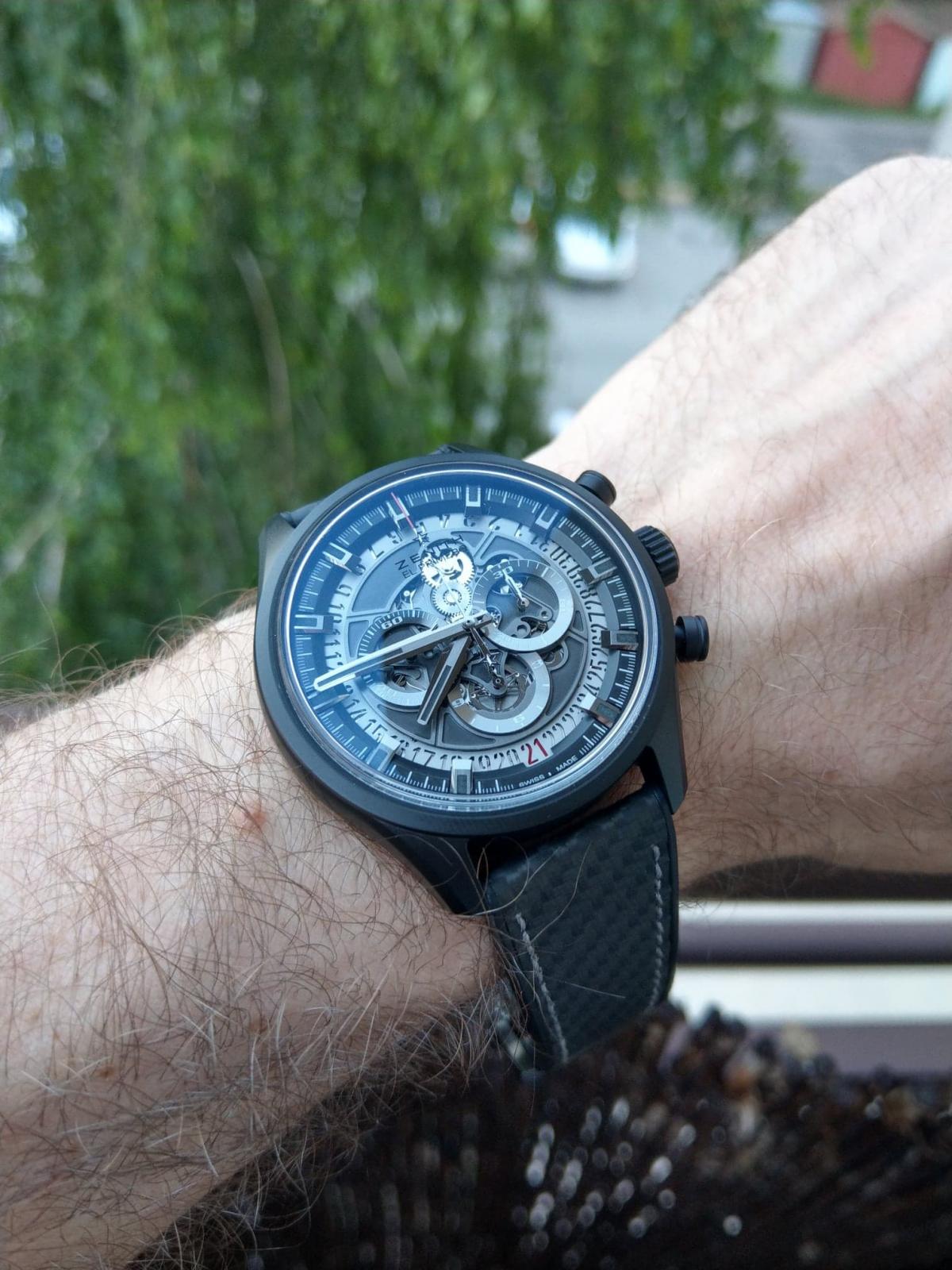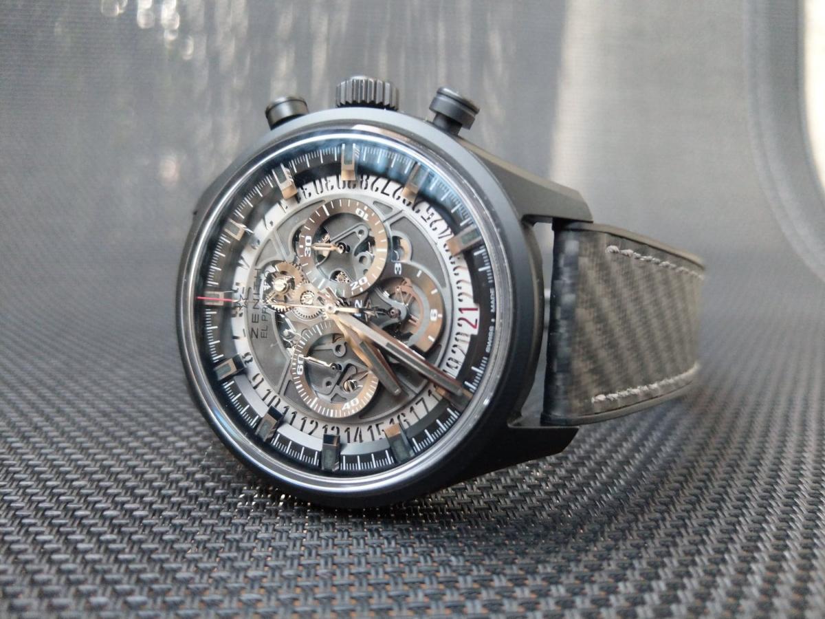 Koperta 45mm/13mm Co do tarczy jest obłędna komórką nie da rady uchwycić gry światła. Wiszące indeksy, szczegółowość, wskazówki jest  po prostu rewelacja w porównaniu z zegarkami które miałem. Fajne rozwiązanie daty, która jest na obracanym pierścieniu z zaznaczoną na czerwoną datą aktualną na dole. Drugi element czerwony to końcówka wskazówki i koniec. Kaliber  El Primero 400 B.
