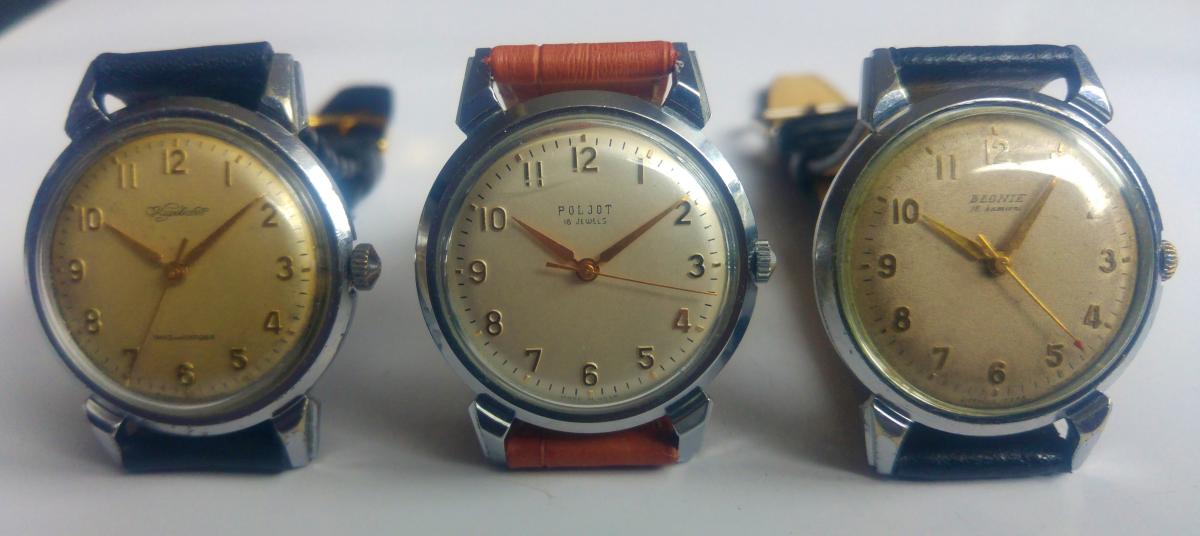 Piękne. Jeśli szukasz tylko chromowanych kopert krab - to wydaje mi się, że musiałbyś upolować jeszcze przynajmniej jednego Poljota (inny logotyp) by mieć komplet. Sama tarcza była w różnych kopertach, no cóż jeszcze 5 i będziesz w domu - 3x Poljoty, 3x Kirowskie, 1x Rodina i Błonie. :P