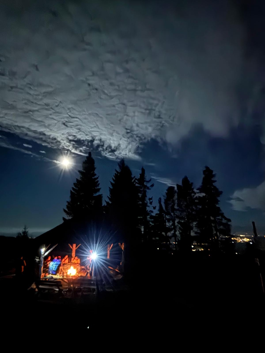 Diabelnie zimny wiatr znad Zakopca (światła z prawej strony) skutkował najszybszym w życiu pożarciem kiełby z rusztu, na stojaka bo drewniana ławka w tyłek "mroziła":