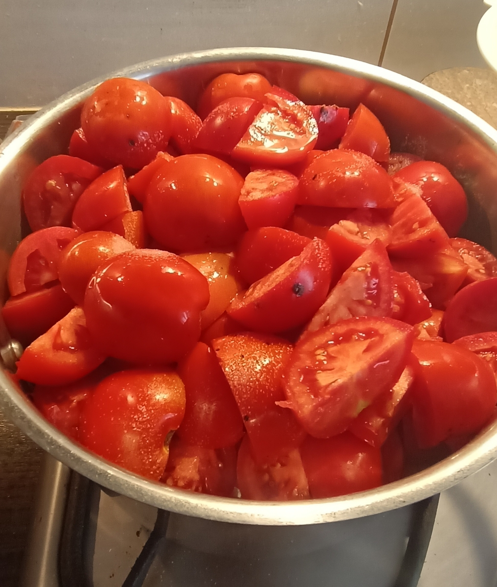 Przestań ja wczoraj cały gar zrobiłem. Tylko bez zdjęć. Kiełbaskę kroję drobniej. A pomidorów chyba z 8szt tylko ja blenduje i wlewam pomidory bez skórek.
