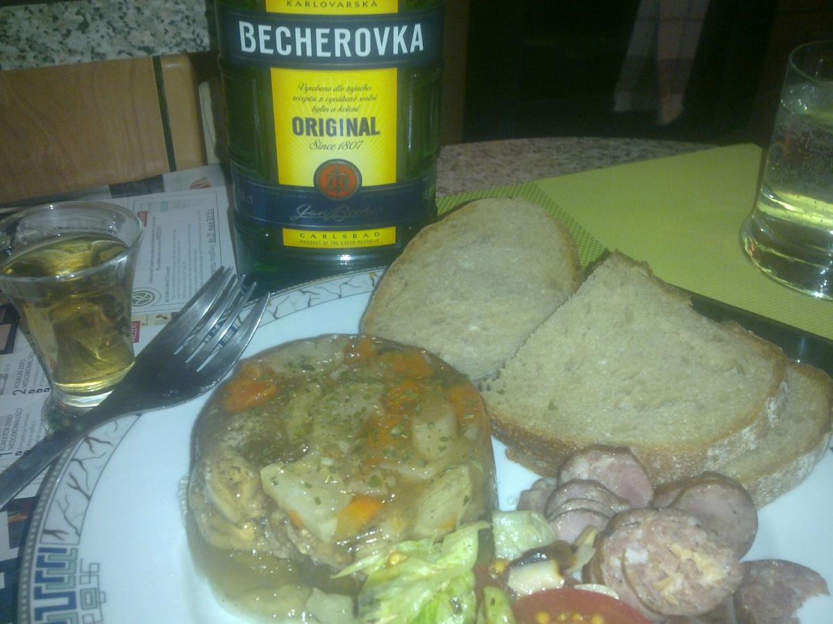 A tymczasem czas na męską kolację  -"myśliwska" ,sałatka ,chleb razowy,"meduza" i "lorneta" :lol: