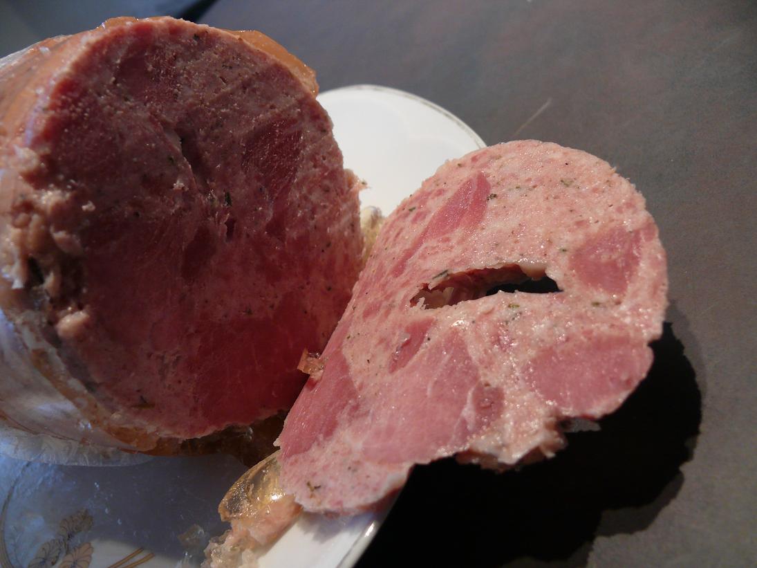 Co do wyrobów wędlin w szynkowarze jedna rzecz mi się podobała. Zapewnienia sprzedającego że do wyrobu mielonek ogranicza nas tylko własna wyobraźnia. Myślę że można przyznać mu rację. Do zmielonego mięsa możemy dodawać wszystko co tylko lubimy i brzmi logicznie :) Większe kawałki niezmielonego mięska, warzywa, podroby. Pierwszy szynkowar otwarty. Pomimo że jest to pierwsza mielonka, którą żona miała okazję przyrządzić sama to świadomość że nie ma w niej jakiś skórek, uszu, chrząstek i innych smakowitości już pobudza apetyt. Tu mamy samo mięsko, trochę podgardla, przyprawy i trochę żelatyny.