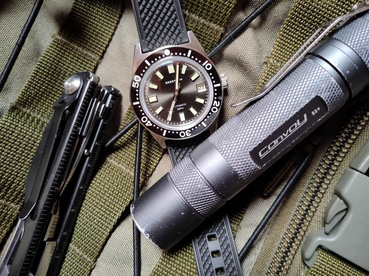 Ja mając w przeszłości 62 MAS od San Martin v 3 41 mm, oczywiście automatycznie porównuje Seesterna do niego. Rozmiar na plus, lepiej się nosi niż SM. U mnie bezel też nie centruje, w SM było idealnie. Luma moglaby być mocniejsza i trochę dłużej trwać, tu też SM wypadał dużo lepiej. Ale fajnie że jest fluorescencyjny datownik, raczej niepotrzebny bajer, ale mnie się podoba. Fajny smaczek z wykończeniem koperty, lubię całe szczotkowane bo nie widać tak rysek, ale super jest to przejście pełnej polerki na skośnych powierzchniach, daje fajny efekt. W Seestern lepiej wykończone są za to narożniki uszu, nie ma ostrych elementów jak w SM. No i cena usprawiedliwia część niedostatków, SM dwukrotnie droższy w wersji 37 mm..