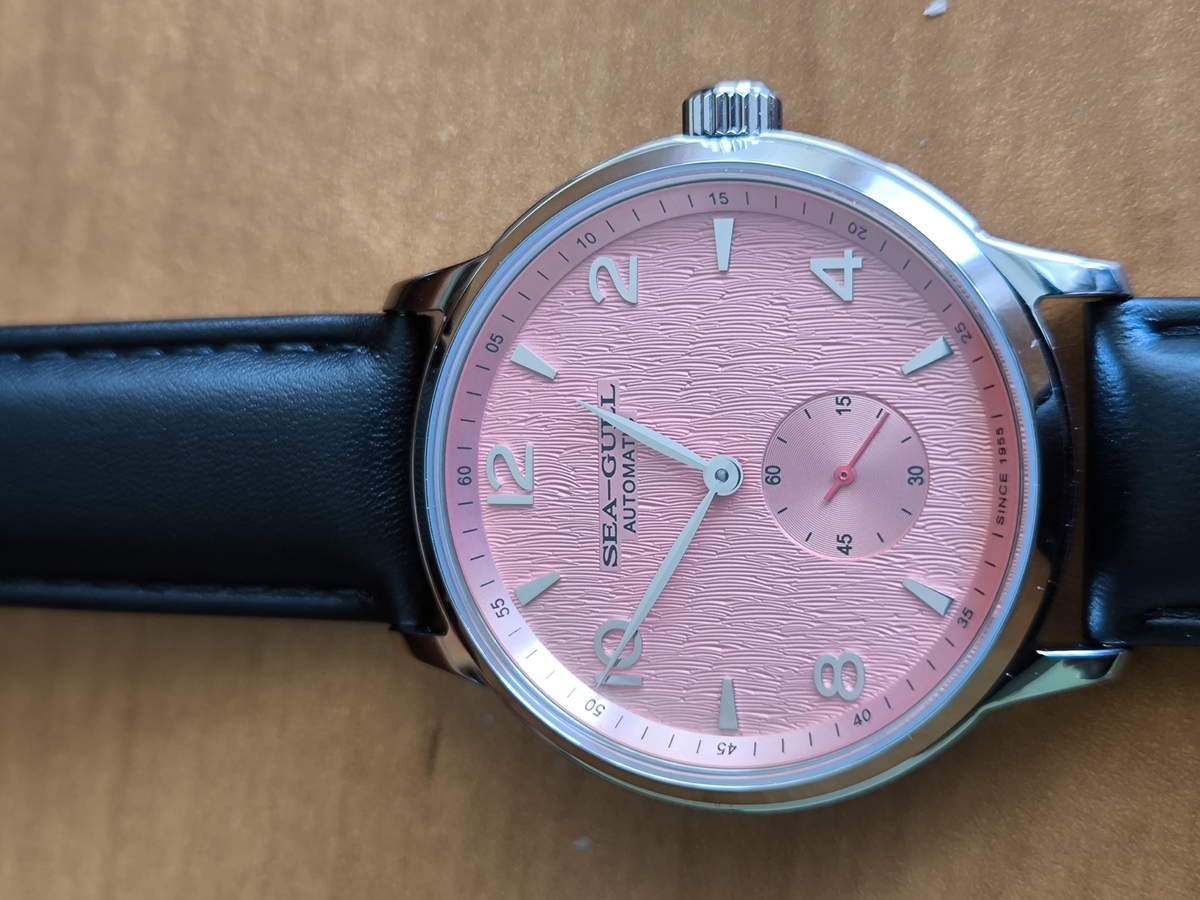 Dzisiaj rano na nadgarstku w końcu zagościł Shanghai z ciemno czerwoną tarczą. Jak dla mnie kolor wypadł świetnie. Niestety trafiła się sztuka ze źle osadzonymi wskazówkami i mam również wrażenie, że tarcza jest nieco przekręcona w prawo... Być może będzie to dobra okazja, do pierwszego rozebrania zegarka i poćwiczenia skila w osadzaniu wskazówek :)