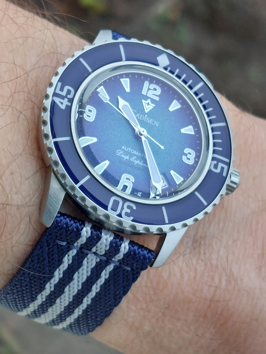 cadisen największy, bo to 42mm i najtańszy. i jego koperta podoba się najbardziej. występuje w trzech wersjach (oraz na mechanizmach miyoty i seiko). ktoś tu pokazał wcześniej wersję niebieską. ładna tarcza, świetnie dobrany pasek - idealny na wielkie greckie wakacje :)