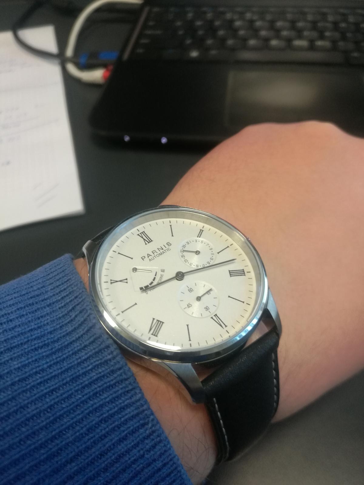 Tak na szybko jest trochę większy od Carnival'a i myślę, że lepiej prezentuje się na nadgarstku w moim przypadku. Osobiście uważam, że pasek jest przyjemniejszy niż w Carnival'u pomimo klasycznego zapięcia. Myślę, że dźwięk nakręcania koronką jest bardziej delikatny. Odnoszę wrażenie, że jest to spowodowane mniejszym skokiem zapadki.