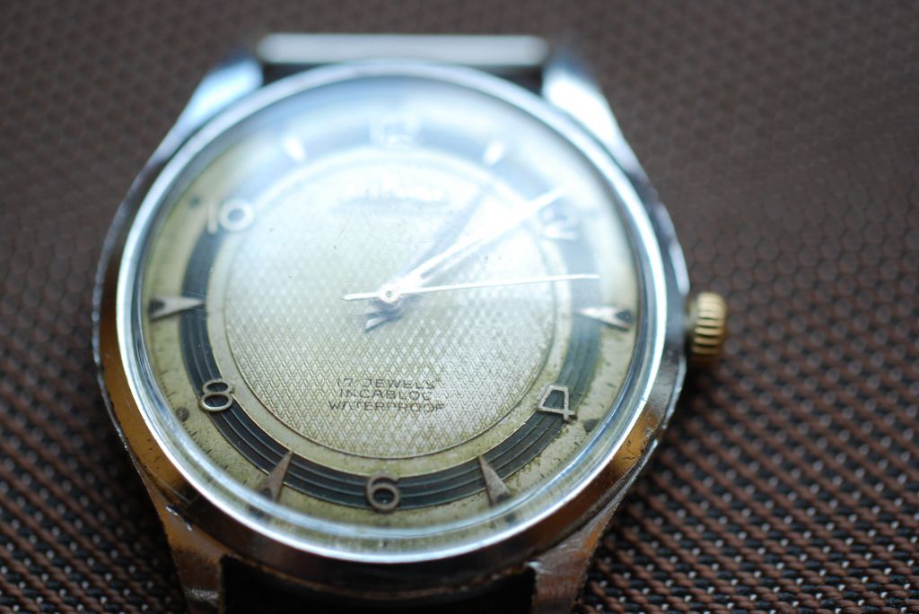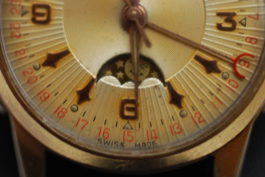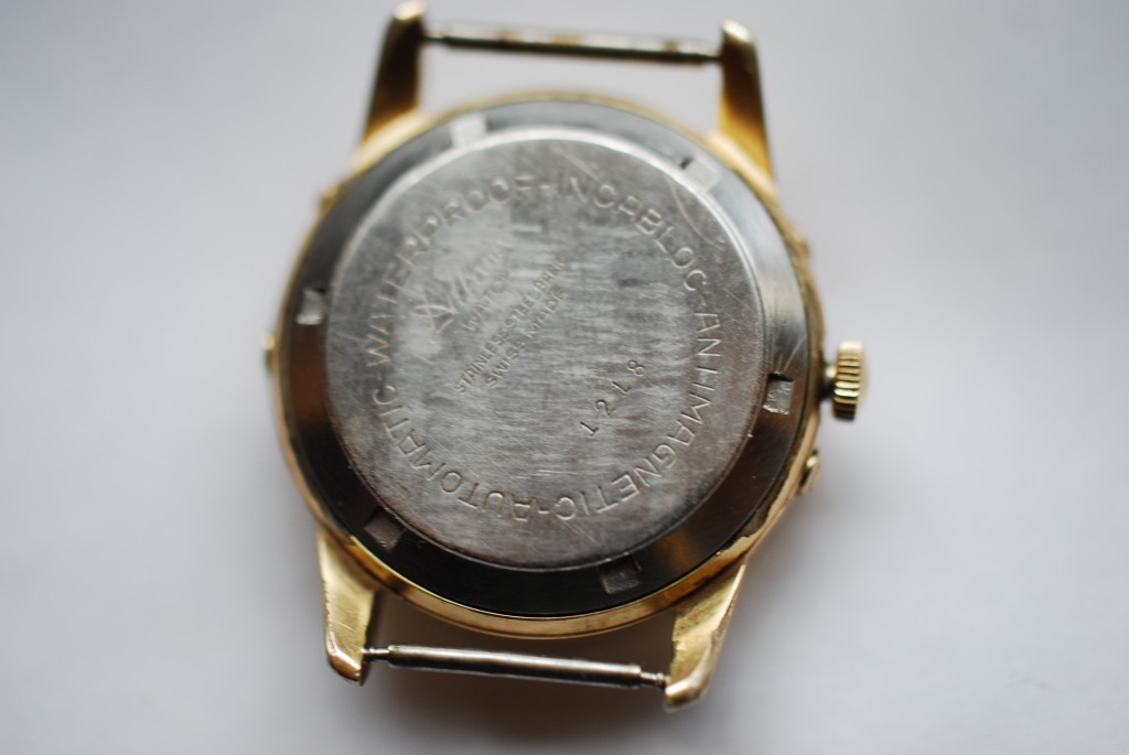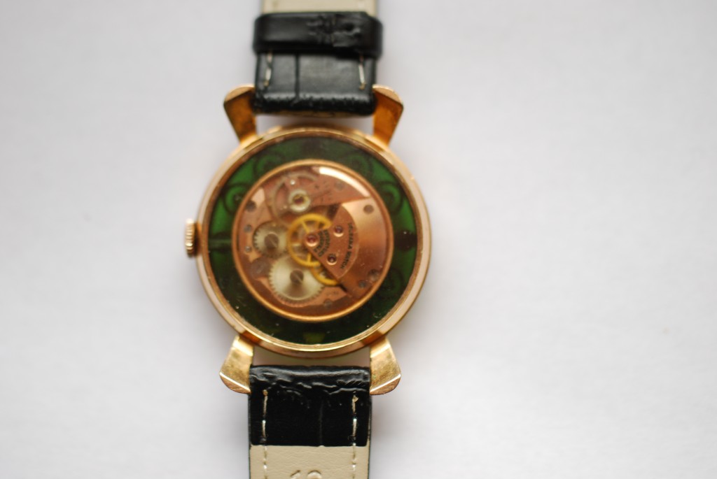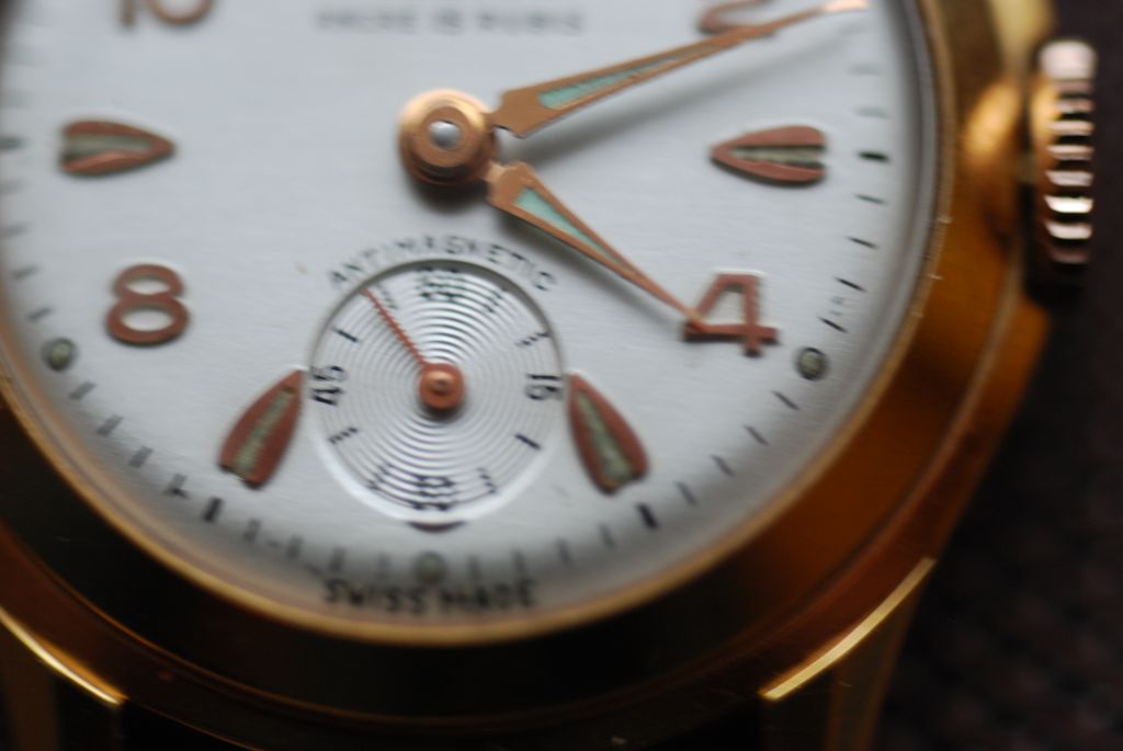 sawcio68 101 #73 Napisano 25 Kwietnia 2016 KRÓL JEST TYLKO JEDEN !!!! Delbana autoamtic Felsa 693 Bidynator 17 jewels . Średnica bez koronki 33,5 mm. Lata czterdzieste . W okienkach dni tygodnia , miesiąca i faz księżyca , dodatkowo wskazówka pokazująca numeryczny dzień miesiąca zakończona półokrągłym grotem. Przycisk z lewej na godz 9 służy do regulowania nazwy dnia w tygodniu . Przycisk na godz 7 służy do przestawiana kwadr księżyca . Z prawej przycisk na godz 2 przestawia nazwy miesięcy. Przycisk na godz 4 służy do przestawiania wskazówki z numerycznymi dniami miesiąca . Zegarek także można regulować metodą tradycyjną obracając koronką w czasie 24 godzinnym. Piękna patyna równo rozłożona na całej tarczy . http://www.ranfft.de...2uswk&Felsa_693 0 Pecunia non olet Udostępnij tę odpowiedź Odnośnik do odpowiedzi Udostępnij na innych stronach