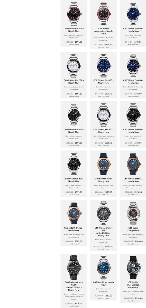 Ja mocno liczyłem na c60 tridenta w 38 lub 40. Ale z ceną szału nie ma. Był 38mm na kajdanie "early new" za 385 funtów bodajże ale zniknął tak szybko jak się pojawił. Nowy 38 na kajdanie to ponad 500 funtów.