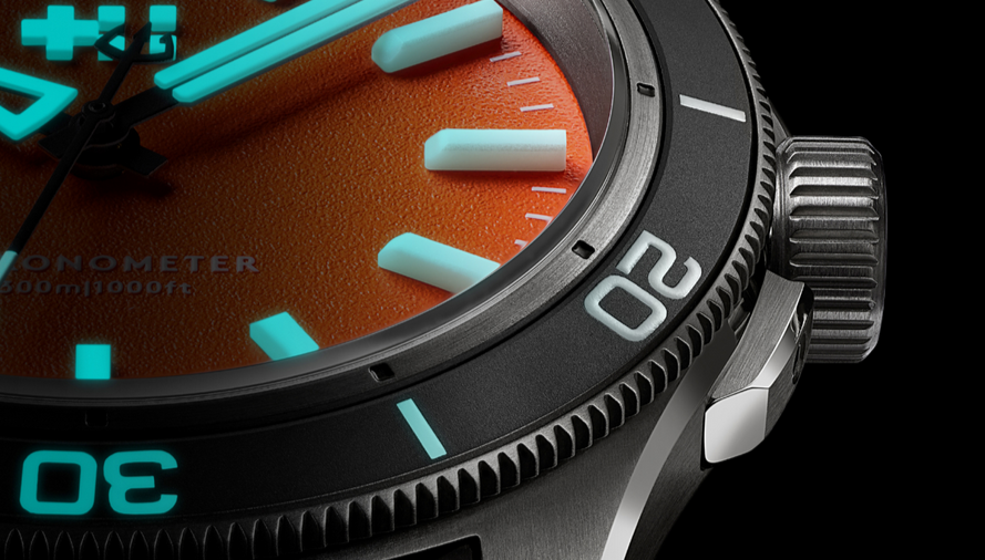 2. Bezel. W opisie zegarka jest opisane, że bezel jest z ceramicznym wkładem. Na zdjęciach wygląda jak aluminiowy pomalowany farbą. Podobnie to wygląda w C60 Bronze, który mam. W moim bezel jest opisany jako "matt zirkonia ceramic bezel". I mój bezel się rysuje. Wiem, bo mi się porysował. Potem rysa zniknęła ale była.  Obawiam się, że ten też może się rysować. A już na pewno zdrapać się mogą cyfry z lumy, bo one nie są pokryte ceramiką. To dobrze widać na zdjęciu poniżej.