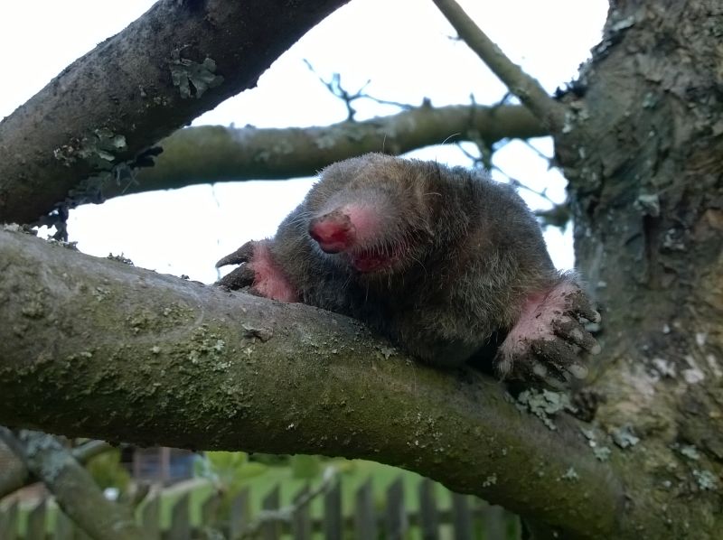 Kret na drzewie?!. Chyba już uciukany, a truchło upozowane do zdjęcia. ;):D