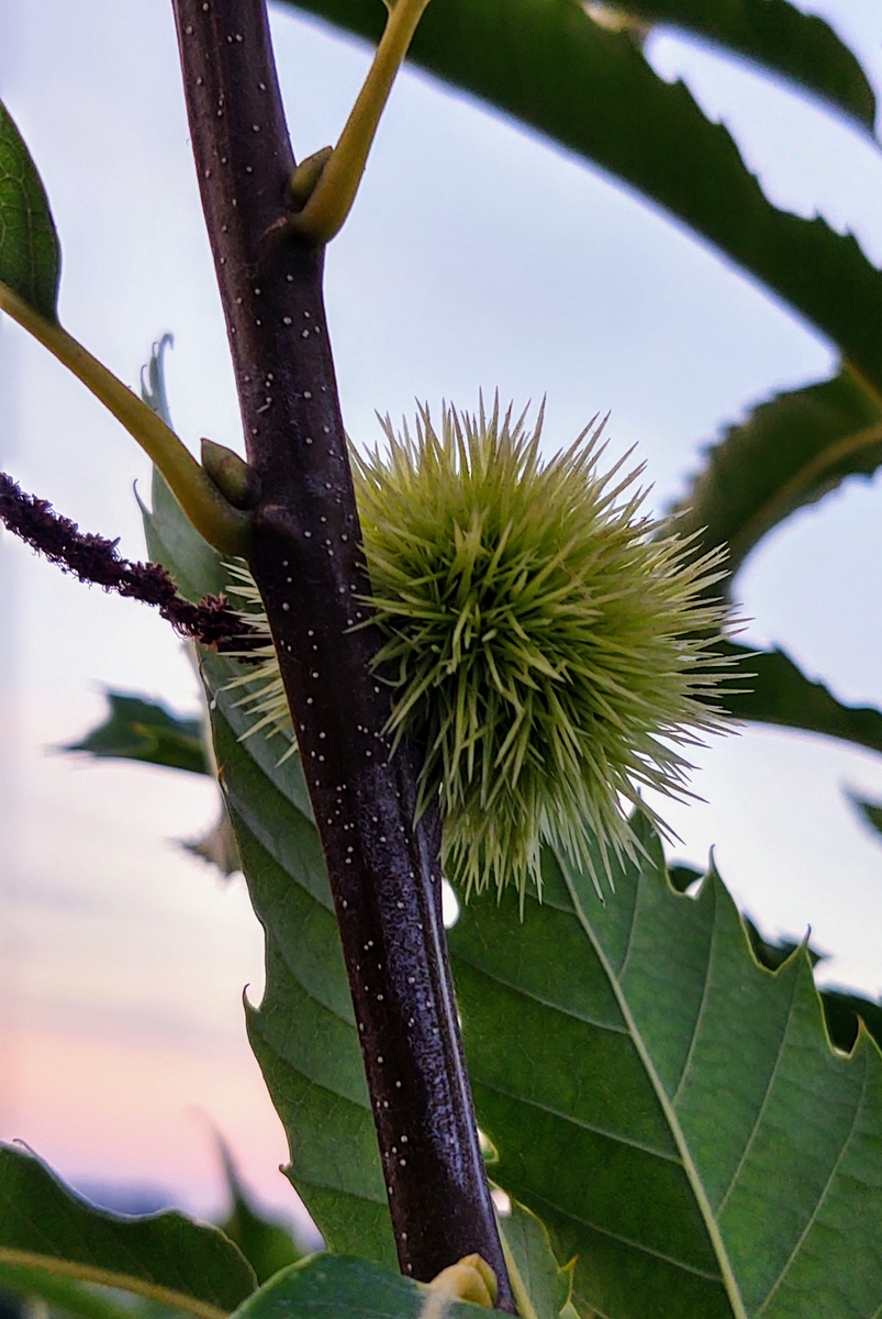 Dwa dni temu wieczorem zauważyłem orzechy na moim kasztanie jadalnym, które pojawiły się po raz pierwszy od posadzenia drzewa.