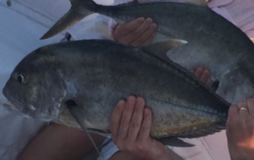 Łowiliśmy na duży hak, ciągnięty przez motorówkę znajomego. Po dwóch "Kilimanjaro" usłyszeliśmy charakterystyczny "bzyk" oznaczający ucieczkę ryb (dwóch jednocześnie) z przynętami. Samo przyholowanie oraz wyciagnięcie ryb z wody nie stanowiły problemu, jako że nie są to wyjątkowo silne osobniki ;)