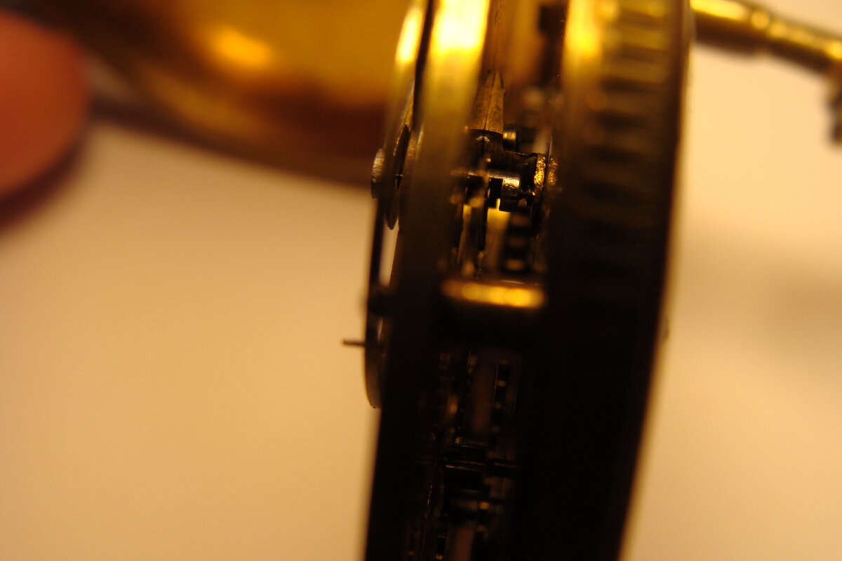 Szpindlakfan 621 #1757 Napisano 11 Czerwca 2020 (edytowane) Ten u góry (bardziej zdobiony) to na pewno cylinder, może na poniższych zdjęciach będzie lepiej widać, ciężko zrobić je wyraźne bo zegarek jest cienki i dochodzi tam mało światła. Tylko o to mi chodzi z jego nietypowością, że zazwyczaj te trójkątne elementy na kole wychwytowym (nie znam fachowej nazwy ) są osadzone na choćby nóżkach żeby zapewnić większy zakres ruchu dla cylindra, a tu są w jednej płaszczyźnie z całym kołem wychwytowym. Czy po tej cesze da się coś więcej powiedzieć o jego pochodzeniu? Edytowane 11 Czerwca 2020 przez Szpindlakfan 0 Udostępnij tę odpowiedź Odnośnik do odpowiedzi Udostępnij na innych stronach