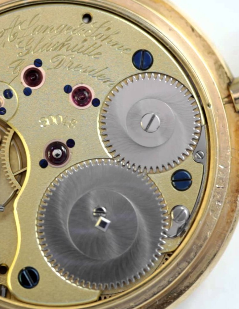 Piotr Ratyński 407 #69 Napisano 1 Stycznia 2016 W słowniku zegarmistrzowskim Wawrzyniec Podwiński jest tylko określenie szlif słoneczny prosty, w wielu innych miejscach taki szlif też jest opisany jako słoneczny. Szlif promienisty nie jest po prostu innym określeniem na szlif słoneczny prosty ?Jeśli nie to czym się one różnią ?Nazwa "szlif słoneczny" jest zarezerwowana dla takiego szlifu, najczesciej na kołach naciagowych:gdzie w momencie padania na niego światła widać odblaski ułożone w wewnętrzny krąg (słońce) i zewnętrzny krąg (promienie), "szlif słoneczny prosty' różni się od tego tym, że jest robiony nie powierzchnią boczną ściernicy, a jej obwodem, co daje rysy proste zamiast łukowatych. Natomiast szlif "promienisty" (tłumacząc z angielskiego "szlif promieni słonecznych") to są tylko rysy przedstawiające same promienie, najczesciej występujący na tarczach. Tak w każdym razie określa się te szlify w środowisku zegarmistrzowskim i zegarkowym, w którym ja się obracam. Faktycznie patrząc na wygląd oryginalnych tarcz podczas pracy to raczej nie ma mowy o skokowym obrocie tarczy, natomiast sam obrót musi być chyba niezwykle wolny aby uzyskać szlif promienisty bez zauważalnych gołym okiem łuków na promieniach.Obroty wcale nie muszą być wolne, wystarczy że są synchroniczne (najlepiej napęd i tarczy i szczotki z tego samego silnika) z odpowiednio dobraną różnicą obrotów. Wydaje mi się też że jest trudne takie dobranie obrotów aby kończąc szlif ostatnia rysa pokryła się z pierwszą i nie było widoczne miejsce zakończenia/początku szlifu.Nie ma tu nic trudnego tylko trzeba wiedzieć o czym się mówi, szlif to jest obróbka powierzchni, która zostawia ślad w postaci nieregularnie rozłożonych rys, natomiast regularne rysy w równych odstępach jedna od drugiej wykonujemy przy pomocy obróbki nazywanej giloszowaniem. W związku z tym, że przy robieniu szlifu rysy są nieregularne, nie jest tu wymagane zgranie początku obróbki z jej zakończeniem. Ważny natomiast jest tu kąt położenia szczotki względem tarczy, gdyż to on zapewnia to, ze druty szczotki podczas szlifowania dotykają tarczy bardziej szeroko przy jej krawędzi niż przy środku (tworząc stożek). Stożek ten powinien być jednakowy podczas całego procesu, czyli kąt i odległość szczotki od tarczy muszą być niezmienne, w innym wypadku uzyskujemy nieregularny szlif, który szpeci, a nie zdobi. 0 Piotr Ratyński Adhibe rationem difficultatibus. Udostępnij tę odpowiedź Odnośnik do odpowiedzi Udostępnij na innych stronach