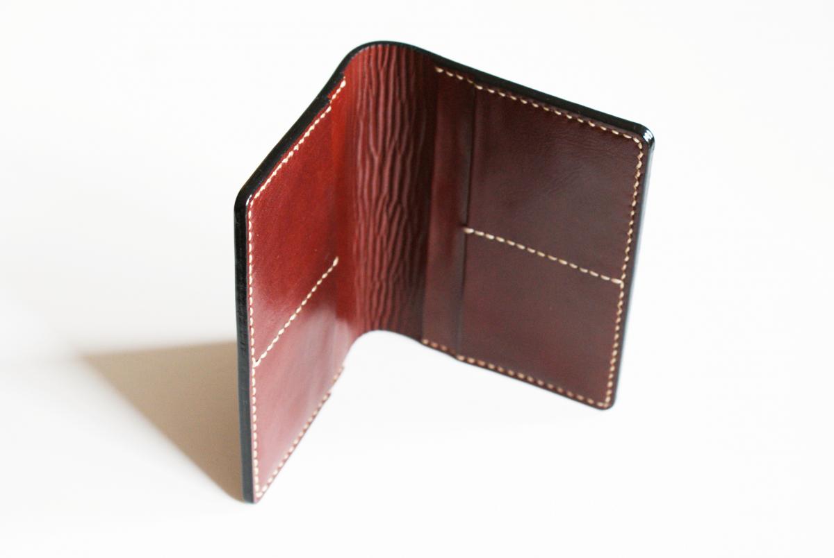 Portfel z koziej skórki. Trzon z juchtu, żeby nie był zbyt wiotki ;) W środku idealnie mieści się dowód rejestracyjny :D