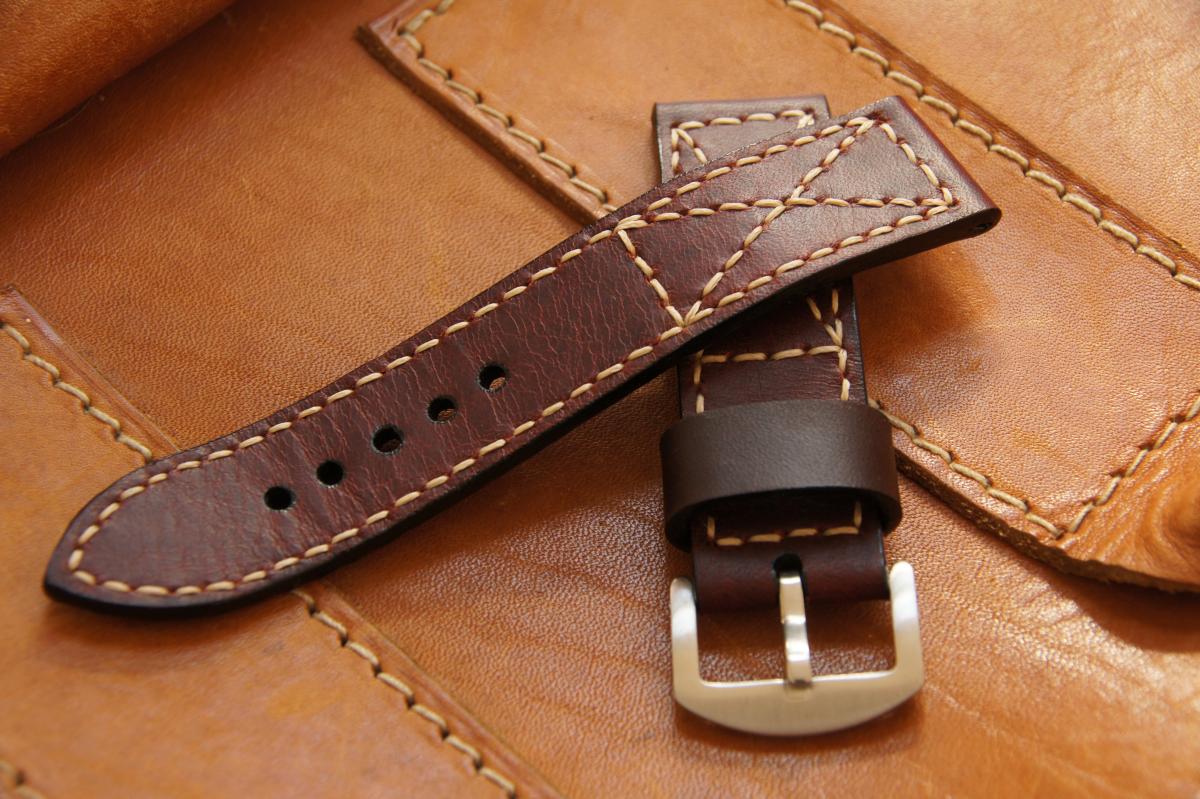 Włoska skóra bydlęca, od spodu jucht naturalny. 22 mm szerokości. Szycie ręczne. Brzegi malowane elastyczną farbą. Całość zaimpregnowana. Pasek szuka nowego domu :)
