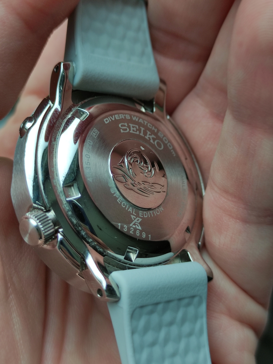 Średnica koperty 42mm, cal. 8L35 (odpowiednik werku 9S55 od GS), ok. 50 godzin rezerwy chodu – pełna specyfikacja na stronie Seiko. Bransoleta z mikroregulacja jak w słynnym MM300.