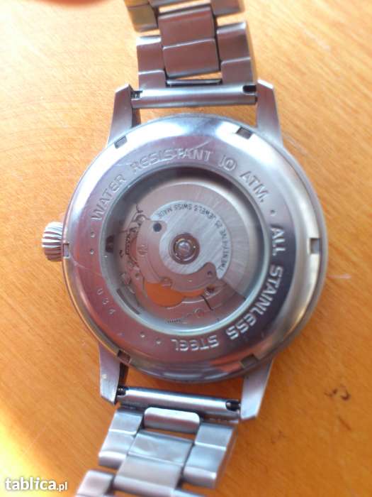 koperta srebrna lekki mat wskazówki,cyfry fluorescencyjne, rezerwa chodu wynosi okolo 42 godz
