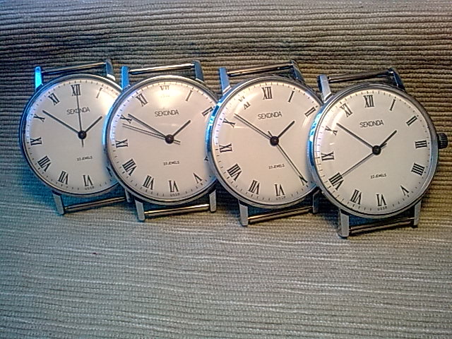 Sprzedam zegarek SEKONDA DE LUX - mechanizm de lux 23kamienie ten żółty identyczny jak w Poliotach i Łuczach de lux - dostępne są 4 sztuki wszystkie są w stanie N.O.S. nieużywane w idealnym stanie różnia się tylko numerkiem na deklu - wszystkie w pełni sprawne