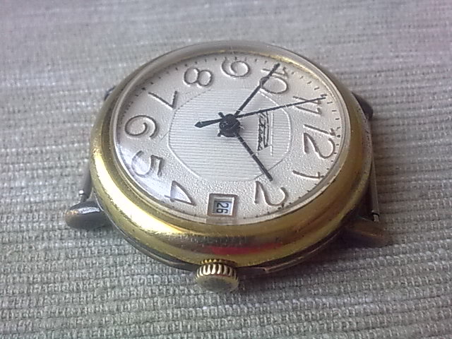 Slava automat, trzyma czas ale chodzi tylko tarczą do góry, koperta z rysami, od dołu przetarcia chromu.