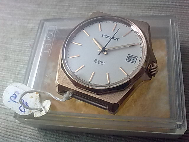 Do sprzedania Poliot automat - stan idealny bez najmniejszej mikroryski - dzisiaj wyjęty z pudełka podejżewam że po wielu latach był cały obklejony pokruszoną gąbką z dna tego pudełka po przetarciu chusteczką okaqzał się idealny - zegarek w pełni sprawny bardzo ładnie chodzi - cena 250zł + 10 wysyłka