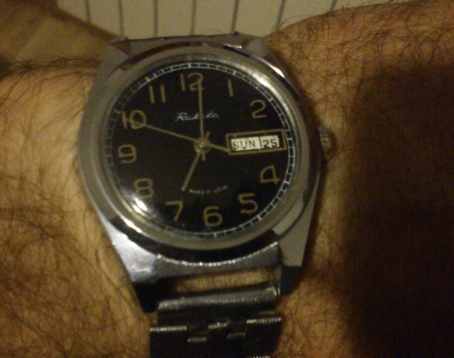 Stan ogólny przyzwoity, jakaś ryska na bransolecie się znajdzie. Punktualność w normie, Szkiełko czyste. Komplet sklepowy. Po gwarancji.