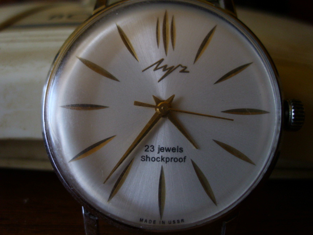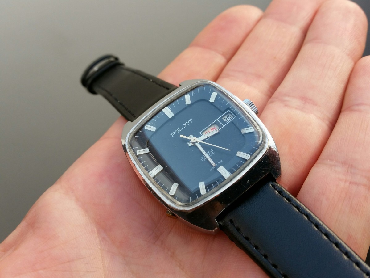 Ponieważ pojawiły się pytania... Czarny Poljot automat. Sprawny. Szkiełko nieoryginalne jak już Panowie słusznie zauważyli. Dla mnie jest jednak za duży - z jasną tarczą jeszcze obleci. Mogę oddać za 100zł w tym ship (dla wnikliwych - moje koszta + wysyłka + jakieś drobne dla zaokrąglenia kwoty. Tych co takie ,,zarabianie" kole w oczy uprasza się o wzięcie głębokiego oddechu.)