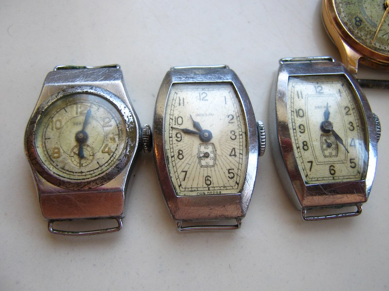 1. Rossija na chodzie. Stan jak na foto, sprawna. Czyszczona jakiś rok temu, nie sprawdzana dokładność chodu. Tarcza przybrudzona, ale może da się uratować. Ja nie ryzykowałem. Brak koszyka trzymającego werk w kopercie - prowizoryczne rozwiązanie. Pierścień od dekla mocno zjechany.