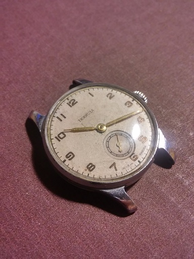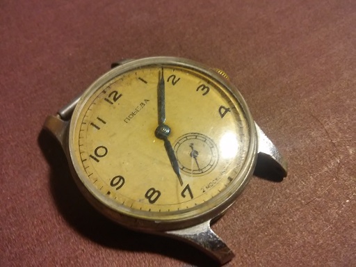 1. Pobieda, uszkodzona, koronka przeskakuje, czasem haczy i rusza wskazówkami, czasem lekko nakręci werk i ruszy. Może się komuś przyda, wskazówki dobry stan, koperta niezły