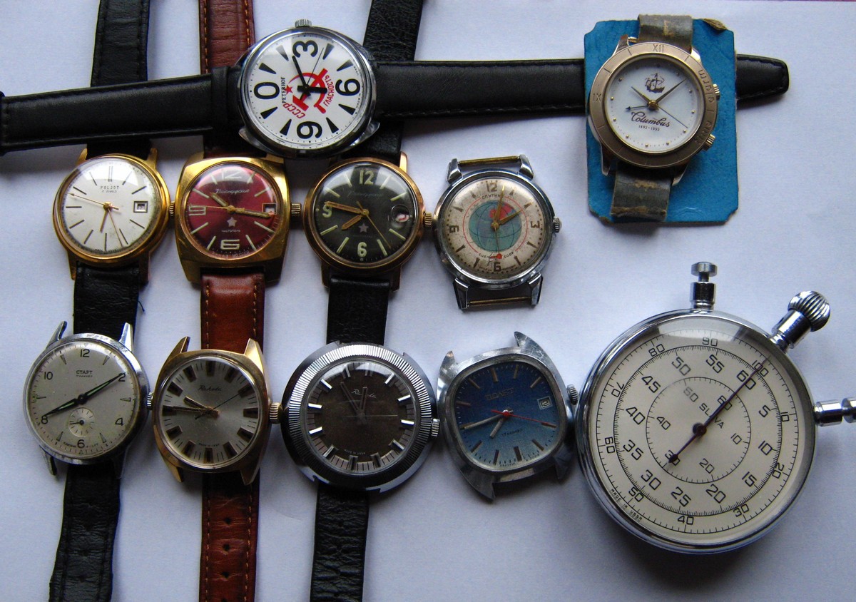 Poljot / Komandirski/Komandirski czarny /Sputnik / stoper słava po 100 zł. ( poljot oraz komandirskie ze stop sekundą ,na chodzie (być może wymagać będą smarowania ), sputnik ze śmiesznym  "sputnikiem" wymagane czyszczenie ) stoper słava ok.