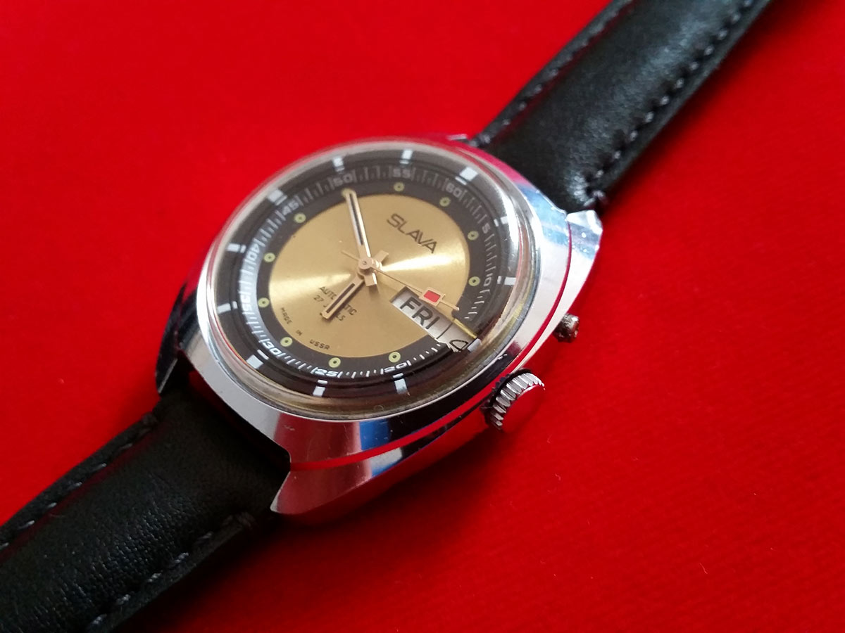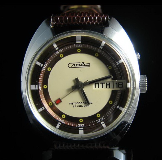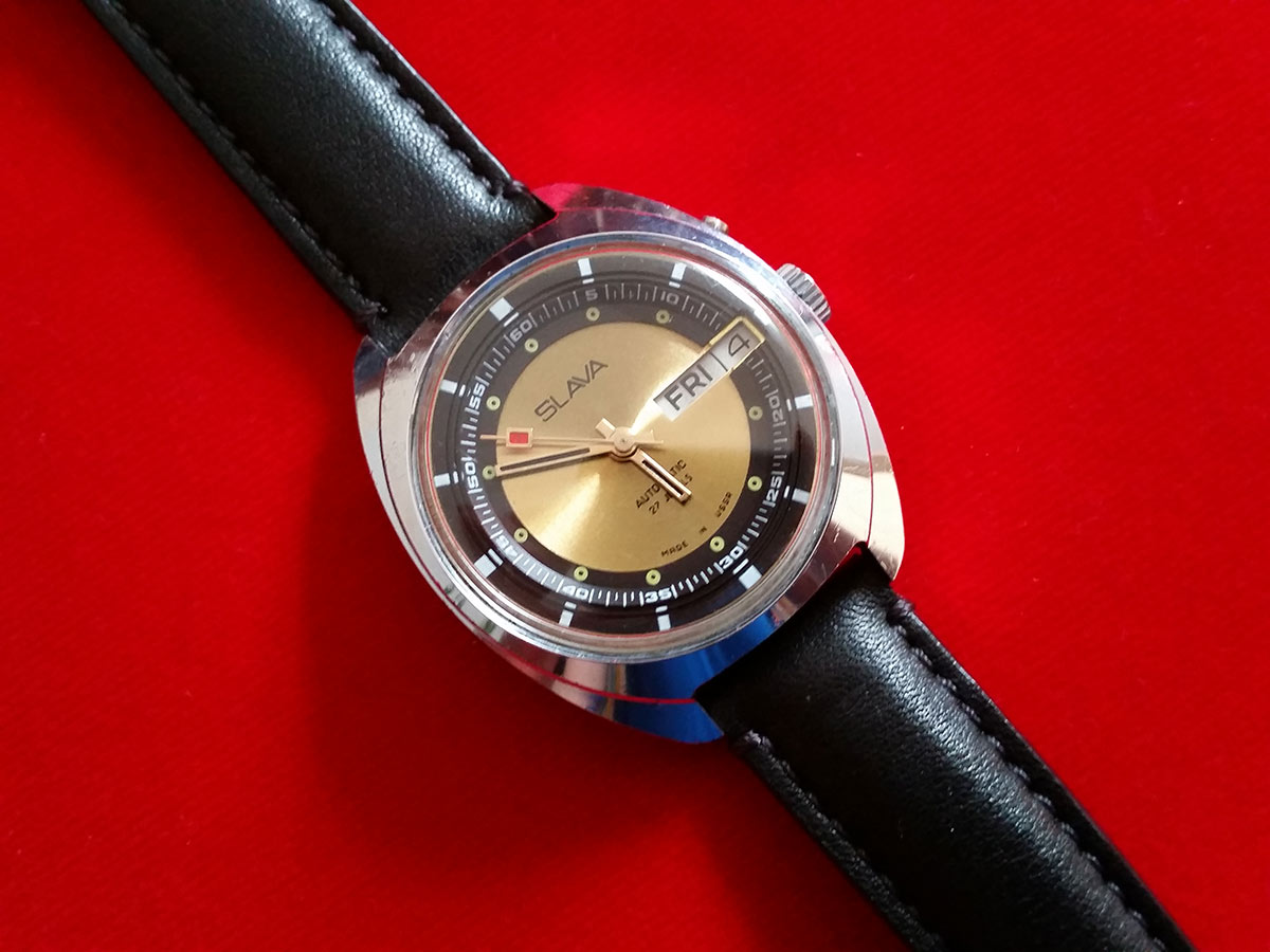 1. Slava 21 Jewels. Model z dość charakterystycznymi wysokimi/grubymi indeksami i pięknym kolorem tarczy.