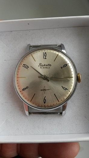 Taki poljot, koperta nie wyżarta od spodu, koronka z wałkiem od nowszego i za długa. Mechanizm czysty i na dobrym chodzie. Wskazówka godzinowa zarysowała tarczę. Nie wiem ile 30zł plus wysyłka?