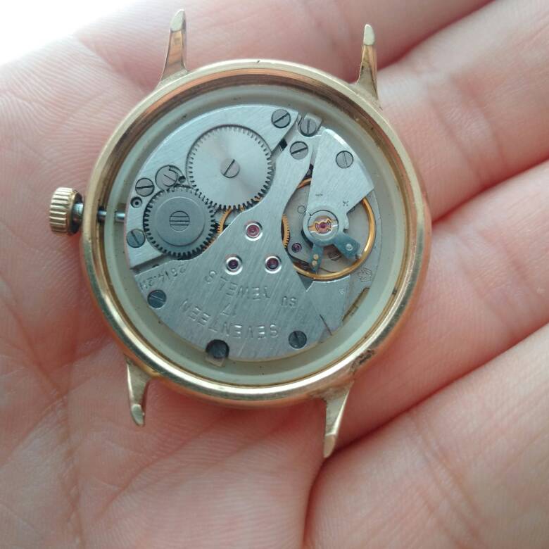 Mankamentem jest zerwana sprężyna naciągu, w zasadzie dla znawcy tematu do wymienienia w 15 minut, ja niestety nie wiem jak się za to zabrać, a nie mieszkam na razie w Krakowie, więc do zegarmistrza będę mógł zajrzeć dopiero w październiku. Do zegarka dodaję mechanizm ze sprawną sprężyną, także w grę wchodzi tylko przekładka. Przed uszkodzeniem zegarek chodził dokładnie, więc tak też powinno być po wymianie sprężyny.